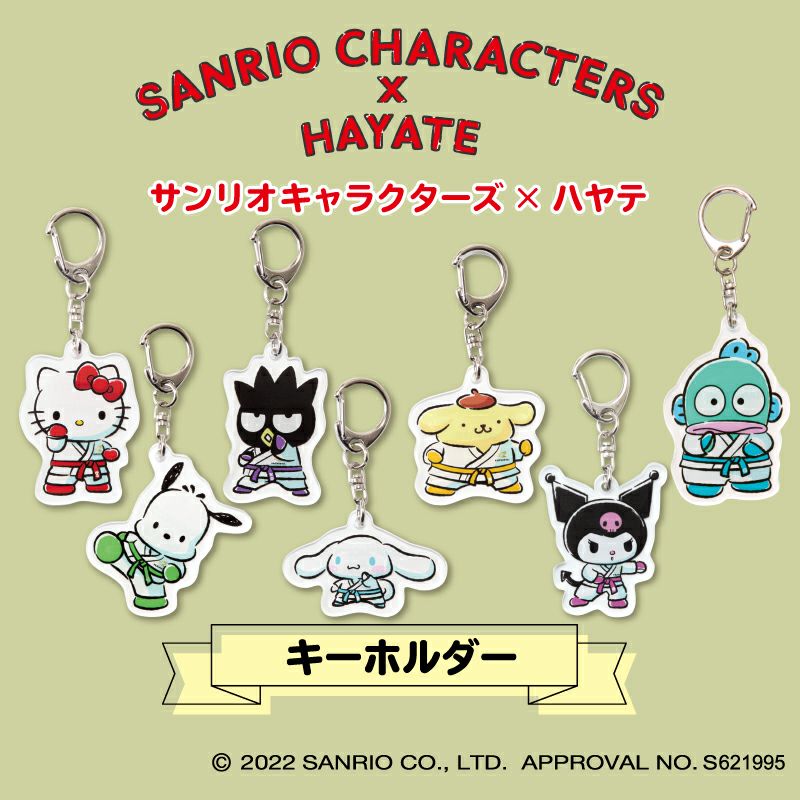 大会出店でも大人気!HAYATEとサンリオキャラクターズとのコラボレーションキーホルダー ハローキティ・ポチャッコ・バッドバツマル・シナモロール・ポムポムプリン・クロミ・ハンギョドンのキャラクターよりお選びいただけます。 ※素材:アクリル製 ※サイズ感:タテ約5cm×ヨコ約3.7cm(ハローキティ)