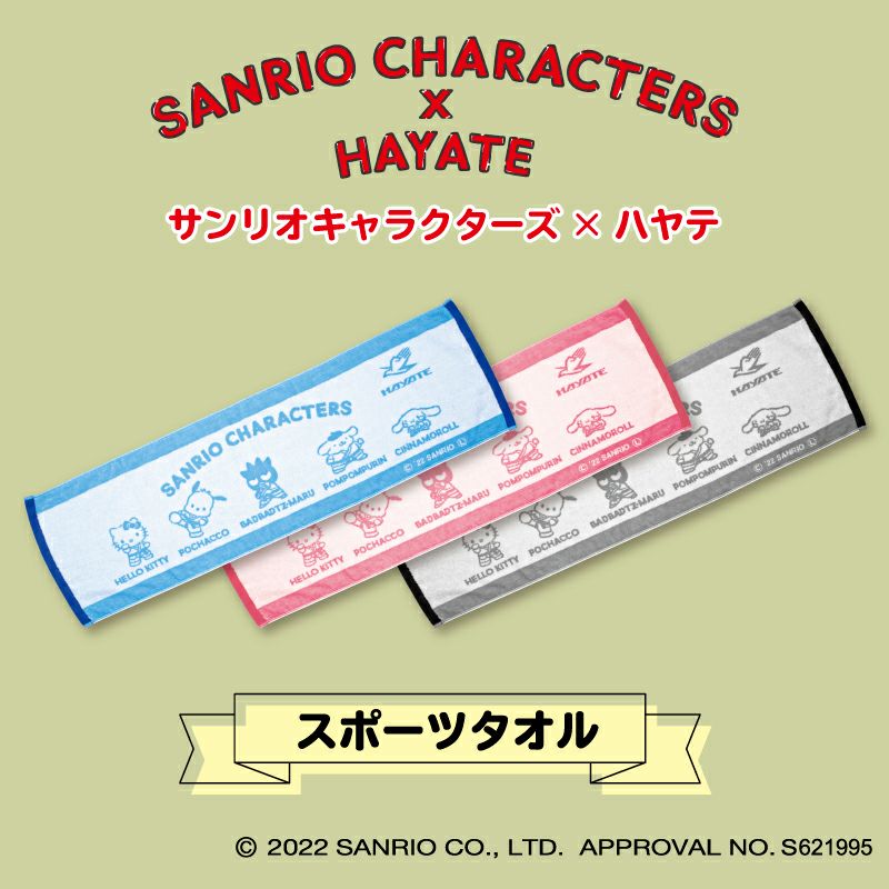 サンリオキャラクターズとハヤテのコラボレーション商品第3弾! サイズ:34×110cm カラー:ピンク・ブルー・グレー