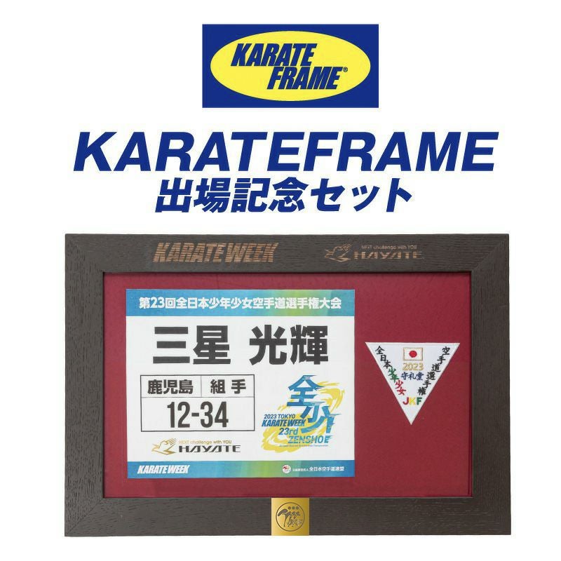 KARATEWEEKの熱い想い出を大会出場に残そう! 大会出場のゼッケン・ワッペン(参加章)をフレームに飾れます。 フレームカラーはオーク・プレーンの2種類から選べます。 北海道産の上質な木材を使用しアカム木工社で製作しております。