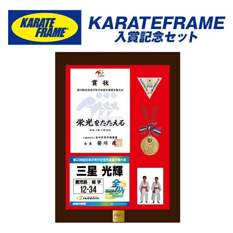 KARATEWEEKの熱い想い出を大会出場に残そう! 大会出場のゼッケン・ワッペン(参加章)・賞状・メダルをフレームに飾れます。 フレームカラーはオーク・プレーンの2種類から選べます。 北海道産の上質な木材を使用しアカム木工社で製作しております。