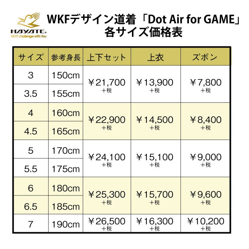 他の画像を見る WKF公式大会対応組手用空手衣 WKFデザイン道着「DotAir for GAME」 (Next generation series) 当店特別価格 ¥ 26,510 税込 詳細を見る お気に入りに登録する