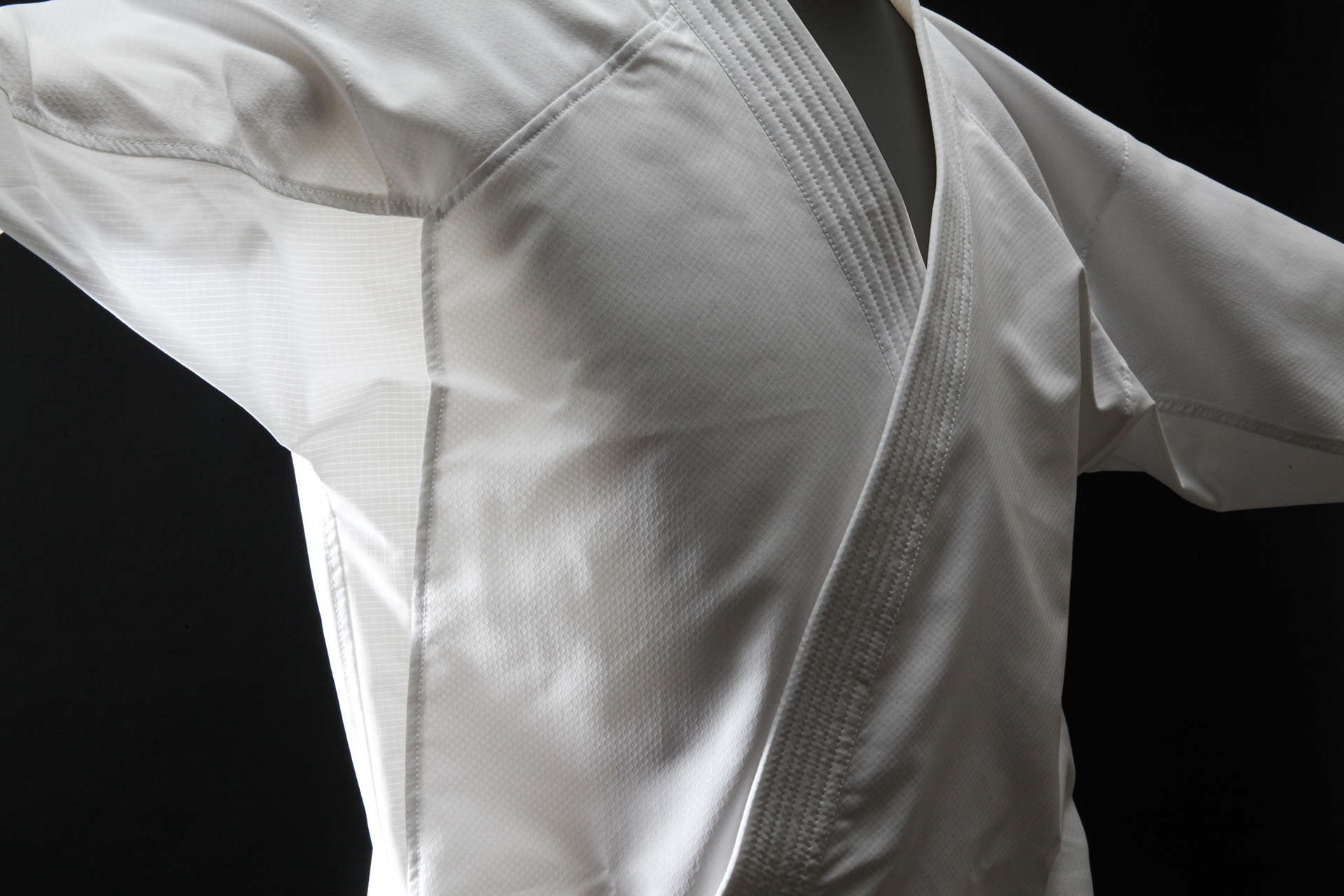 高い技術の立体縫製により、突きを出しても袖が引っ張られず、蹴りを出しても裾の長さが変わりません。
