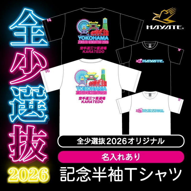 Tシャツの前面はオリジナルHAYATEロゴマーク、背面に全少選抜オリジナルプリントが入ります。